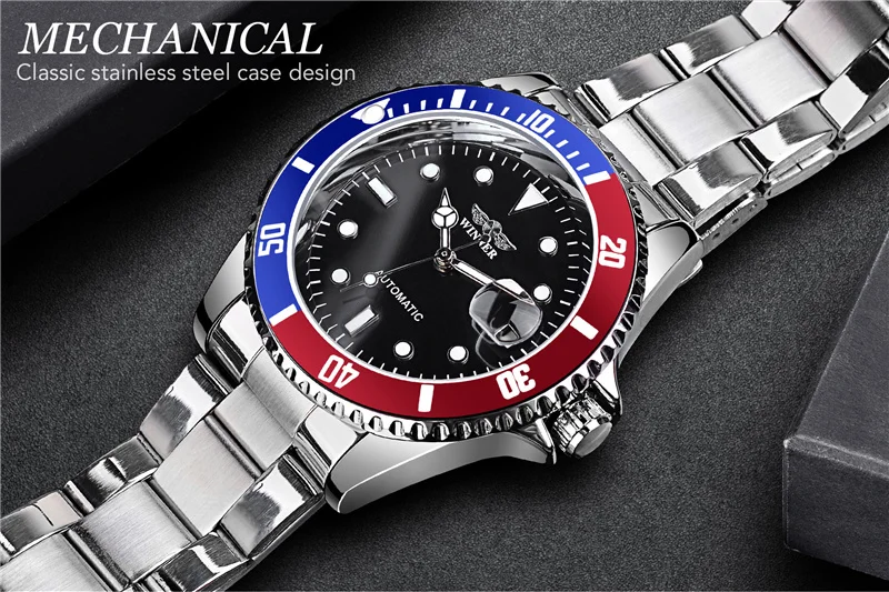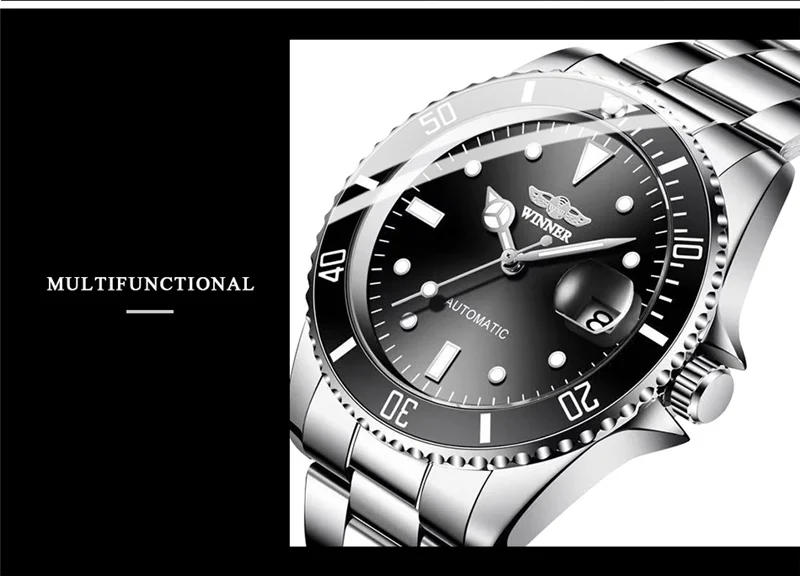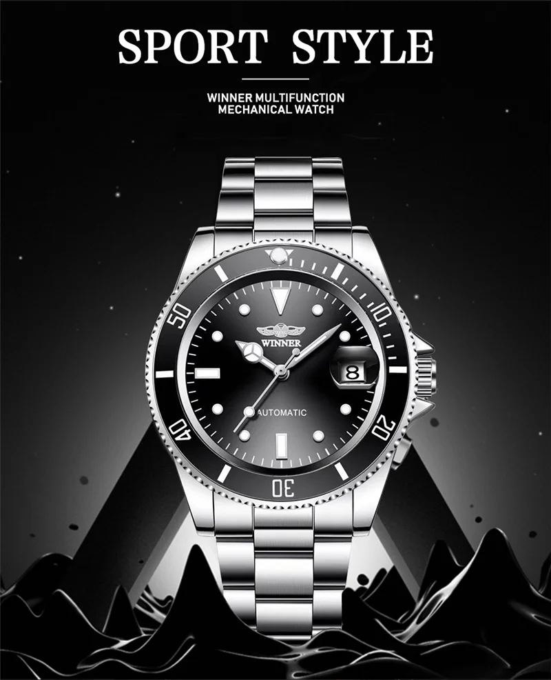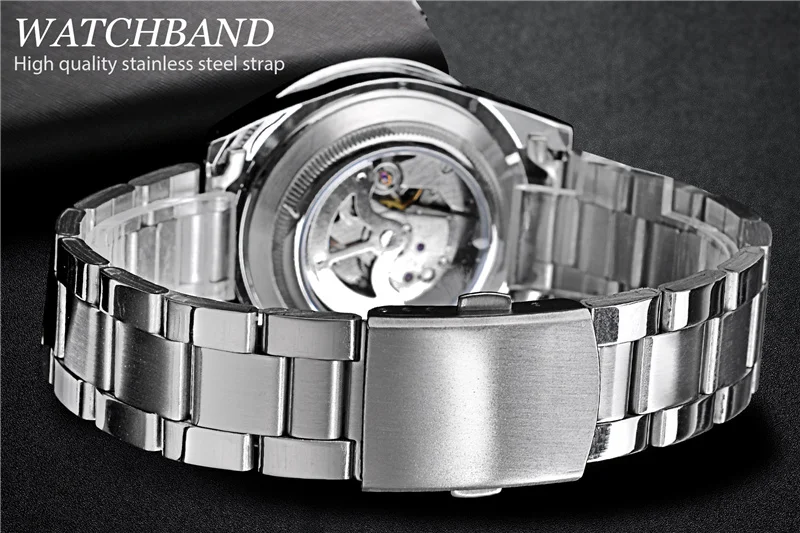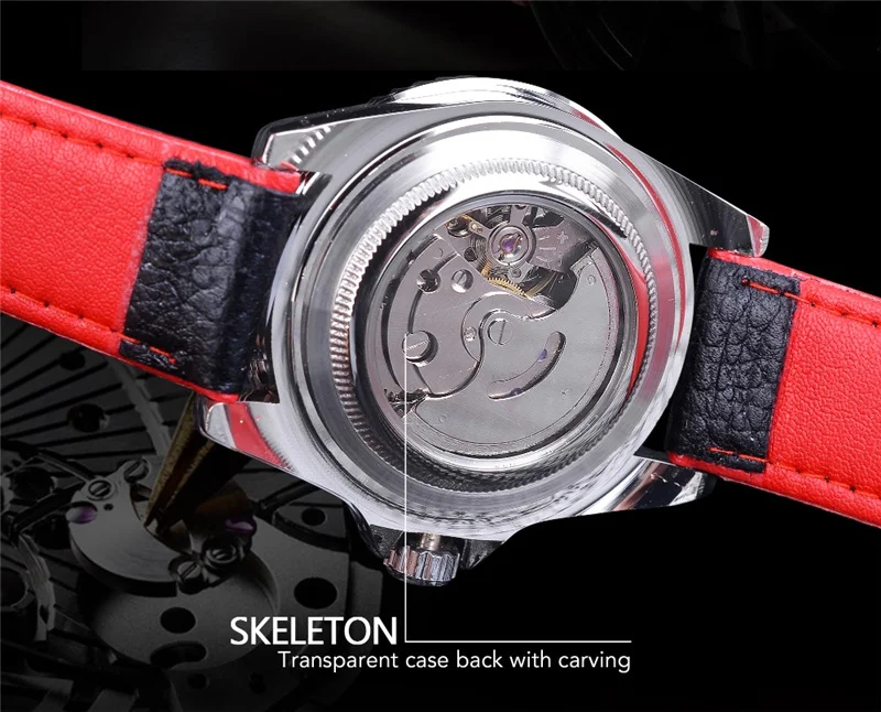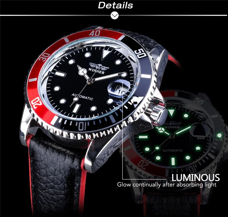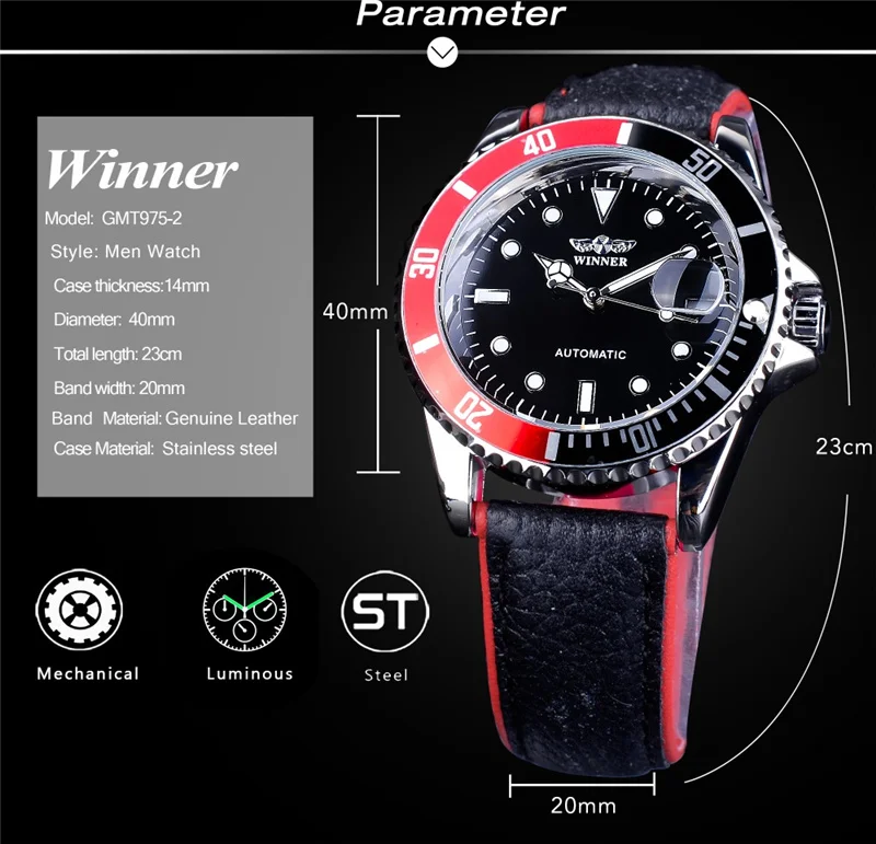 WINNER 002 Automatic Mechanical Wristwatch for Male Luminous Hands Date Fashion Stainless Steel And Leather Strap Clock Gifts