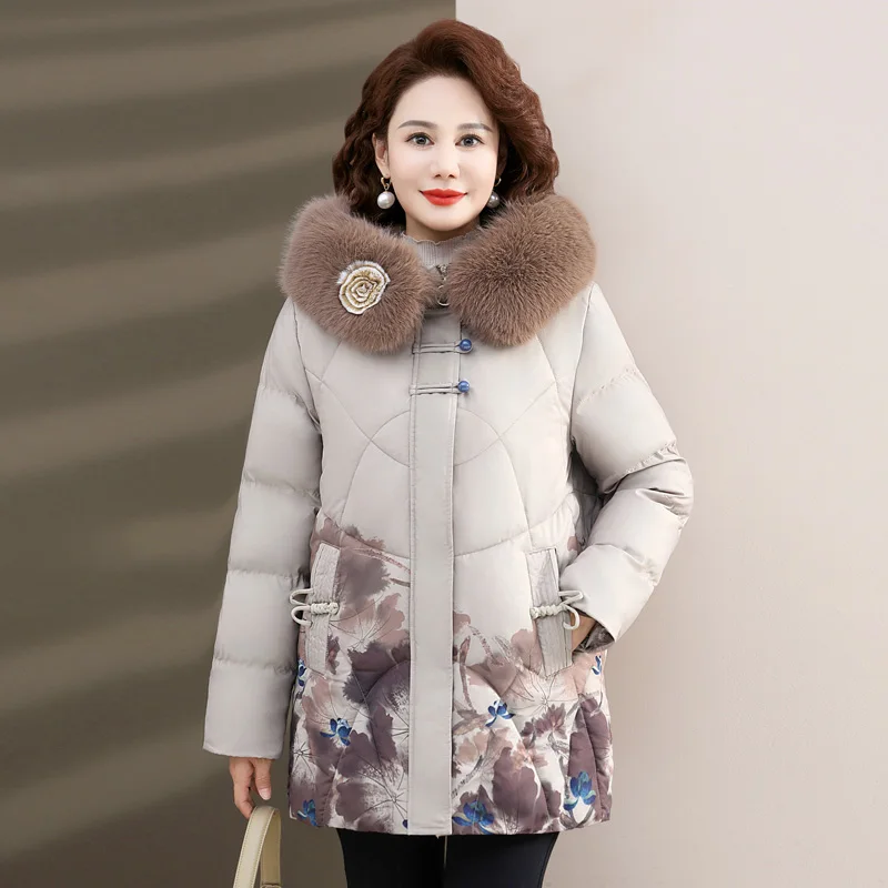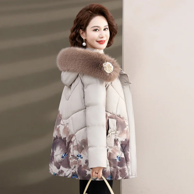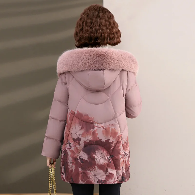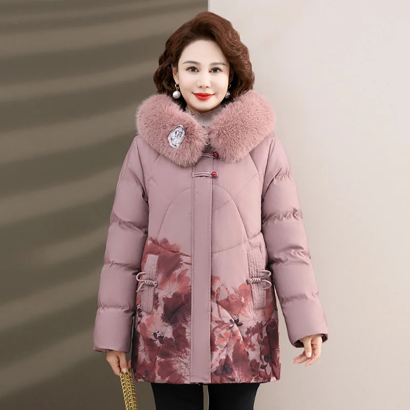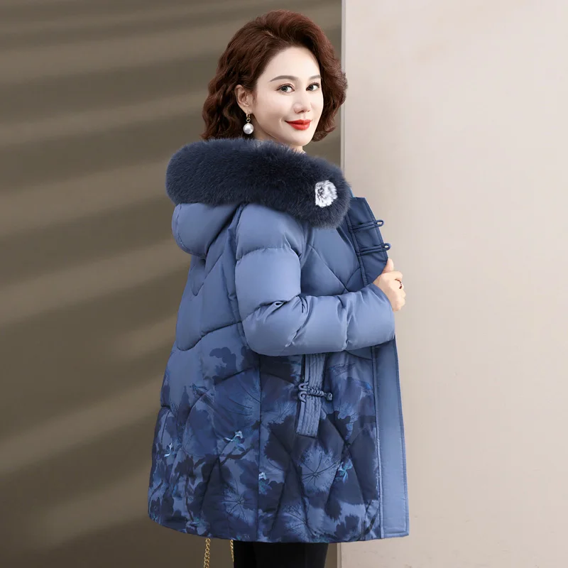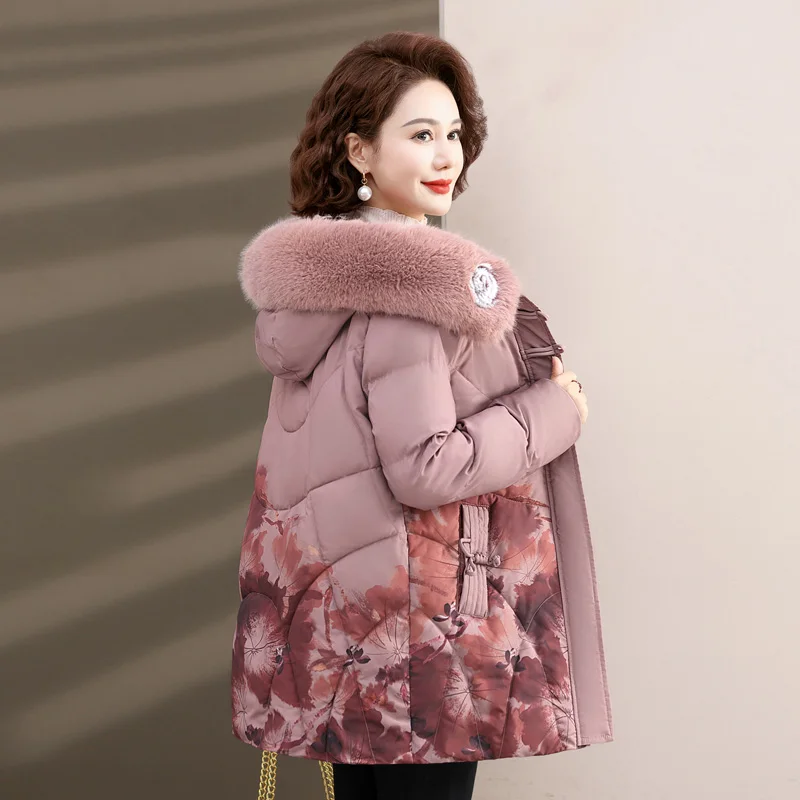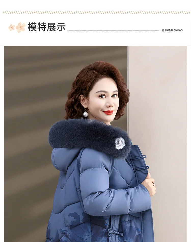 Women's Clothes Middle Aged Women Winter Jacket Long Warm Parkas Female printing Coat Thicken Cotton Padded Hooded Jacket