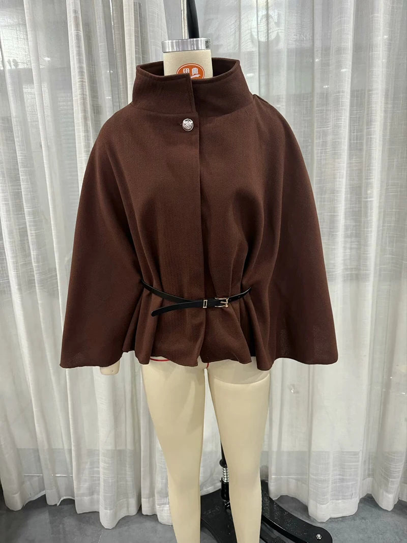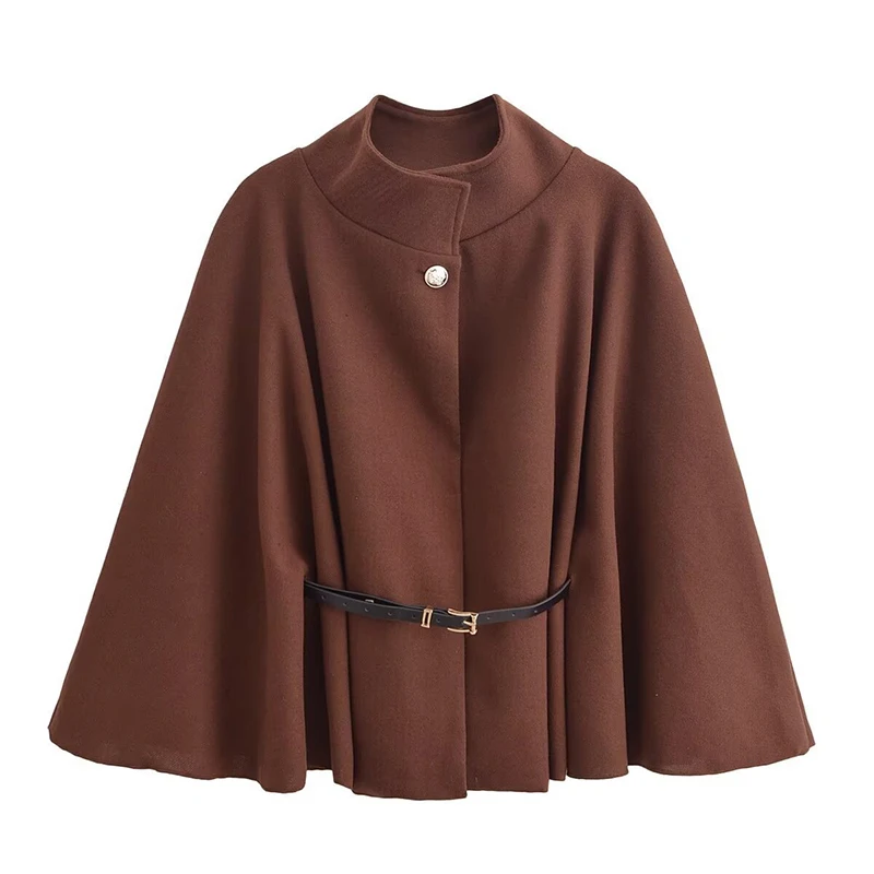This women's cloak features a trendy spring fashion design, perfect for adding a touch of elegance to your wardrobe.