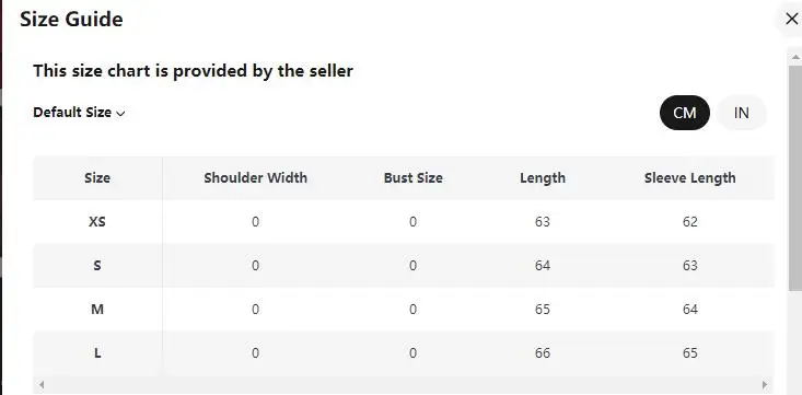 size_info: {"sizeInfoList":[{"length":{"cm":"0","inch":"0.00"},"size":"XS","vid":872},{"length":{"cm":"0","inch":"0.00"},"size":"S","vid":100014064},{"length":{"cm":"0","inch":"0.00"},"size":"M","vid":361386},{"length":{"cm":"0","inch":"0.00"},"size":"L","vid":361385}]}